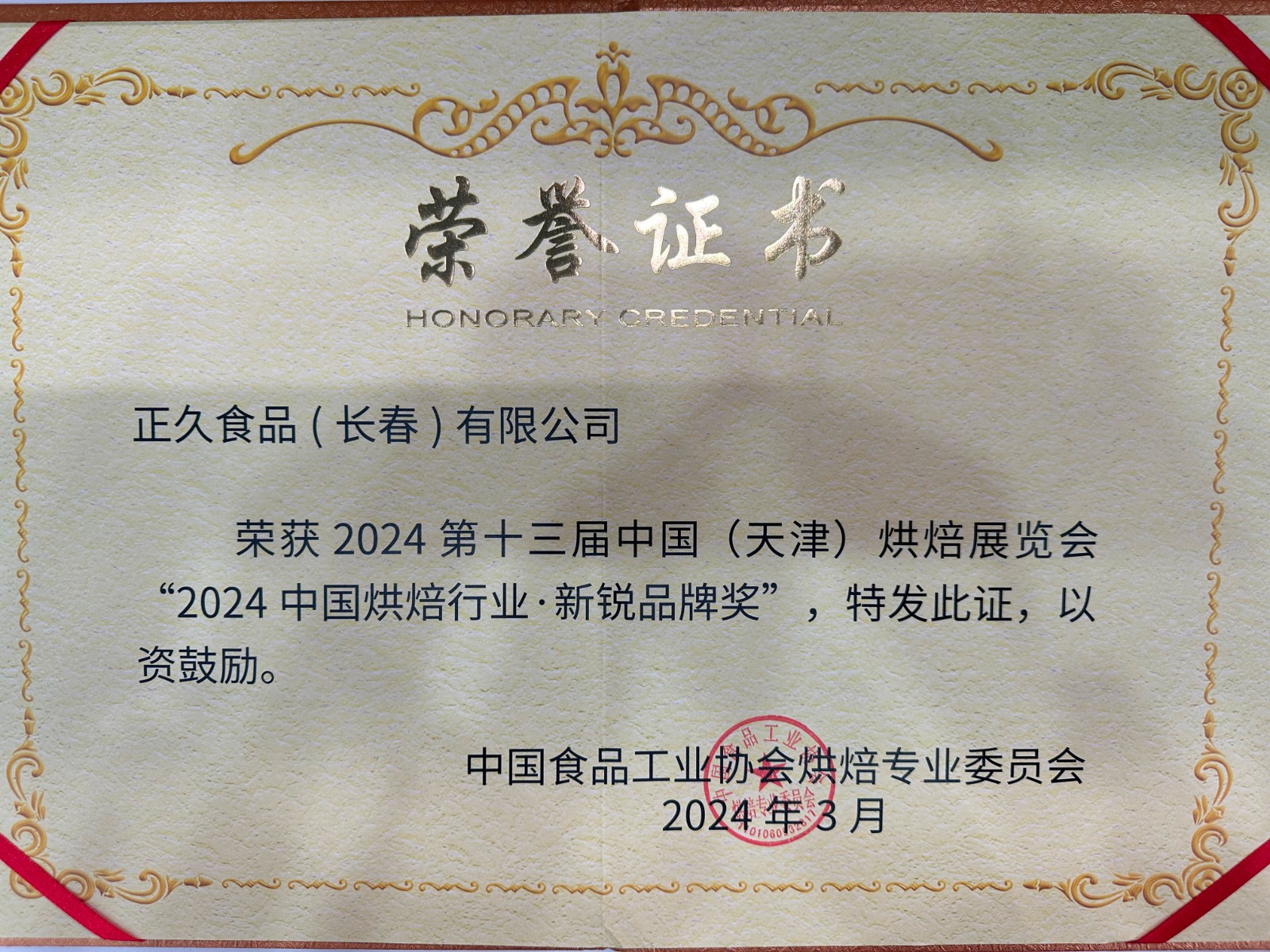 荣获“2024中国烘焙行业-新锐品牌奖”